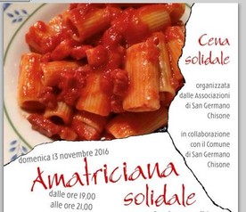 Amatriciana solidale con la Turinella! Cena solidale per i terremotati con le Associazioni! Dopo le numerose iniziative di solidarietà delle vittime colpite dal sisma, anche le associazioni di San Germano Chisone in collaborazione con il Comune di San Germano, hanno deciso di dare un sostegno e mostrare vicinanza alle popolazioni che da un giorno all’altro si sono trovate senza casa e non solo.